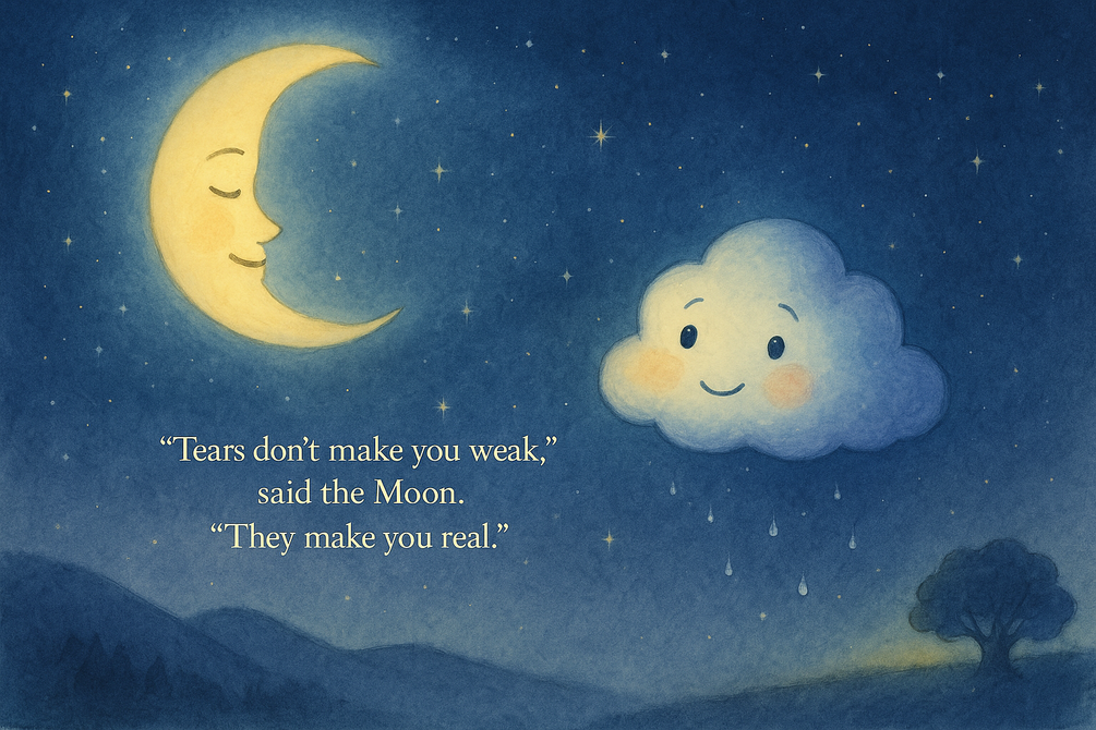 This illustrated picture book follows a tender-hearted cloud who tries to be cheerful every day—but inside, it carries a storm of unspoken feelings. As the skies change and the winds whisper truths, the cloud begins to learn that there’s magic in softness, and strength in every tear.